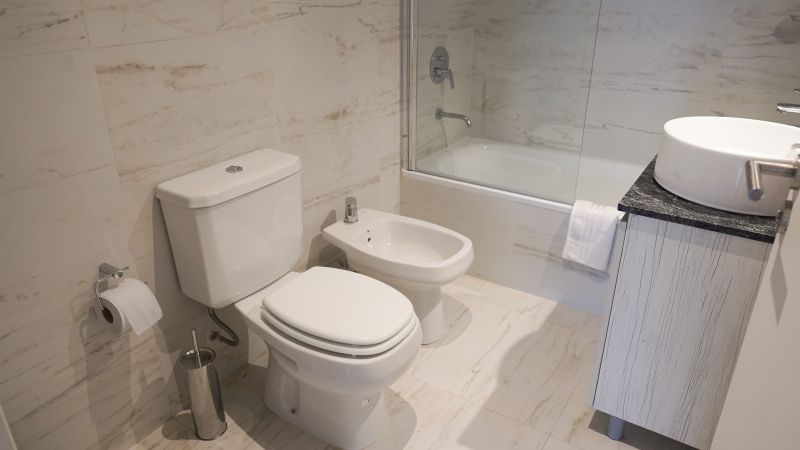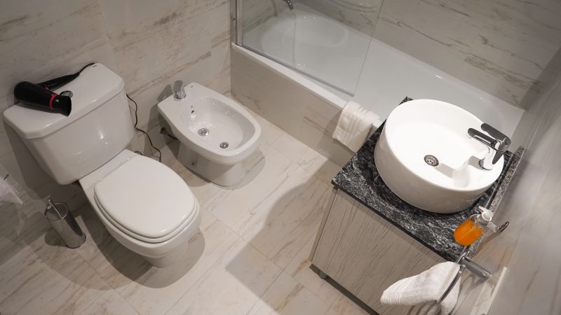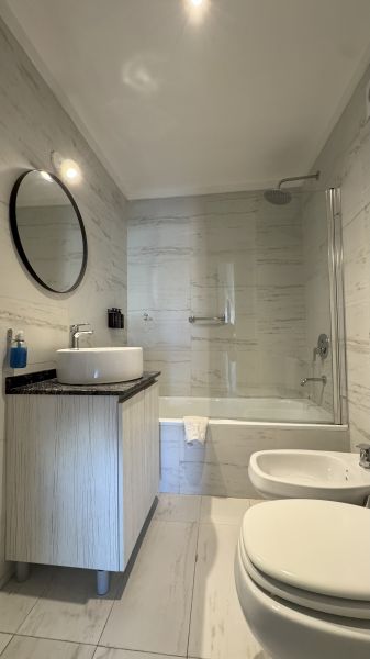 ?Baño completo con bañera y secador de cabello.